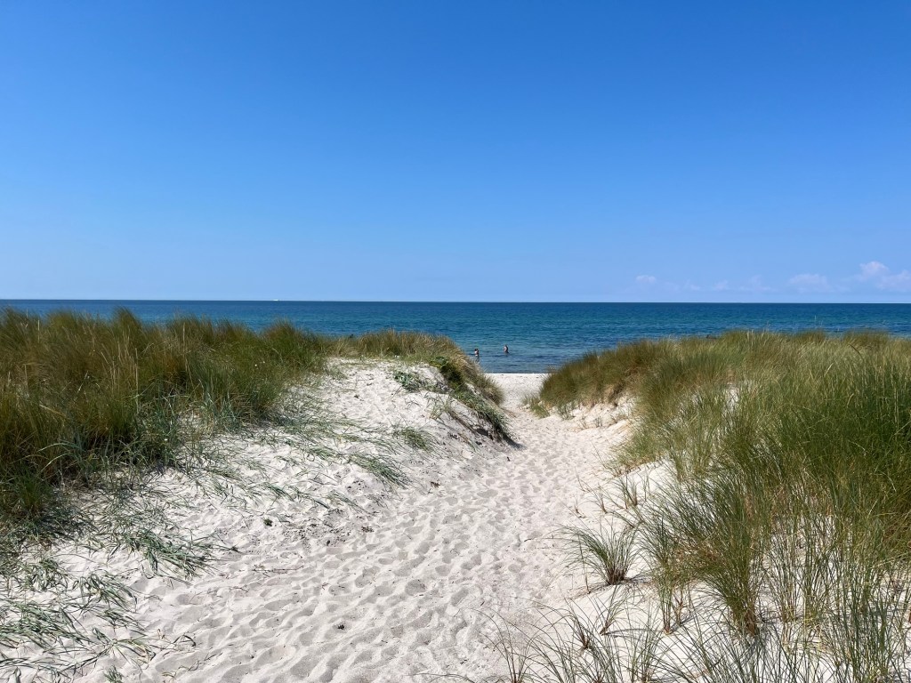 le contraste saisissant entre deux pays (le Danemark et l’Allemagne), mais aussi, dans une moindre mesure certes, entre les anciennes Allemagne de l’Ouest et de l’Est. En gros, les paysages danois très peu peuplés, une manière danoise de profiter de la plage ou plus généralement de la vie d’une manière très simple (ni transats ni Strandkörbe, mais aussi très peu de cafés ou restaurants, et ceux-ci généralement très « sans chichi », burgers ou pizzas. Le contraste est donc saisissant avec l’Allemagne de l’Ouest, beaucoup plus peuplée, avec de nombreux villes et villages, de l’horeca à foison, des stations balnéaires très « côte belge » (les Strandkörbe en plus et les grands immeubles en moins !) qui côtoient des petites plages « sauvages » à la danoise. Passer à l’Est, c’est retrouver un peu de cette atmosphère danoise, avec à nouveau davantage d’espaces naturels exempts d’habitations, une tradition culinaire spécifique aussi, conservée depuis l’époque de la RDA.