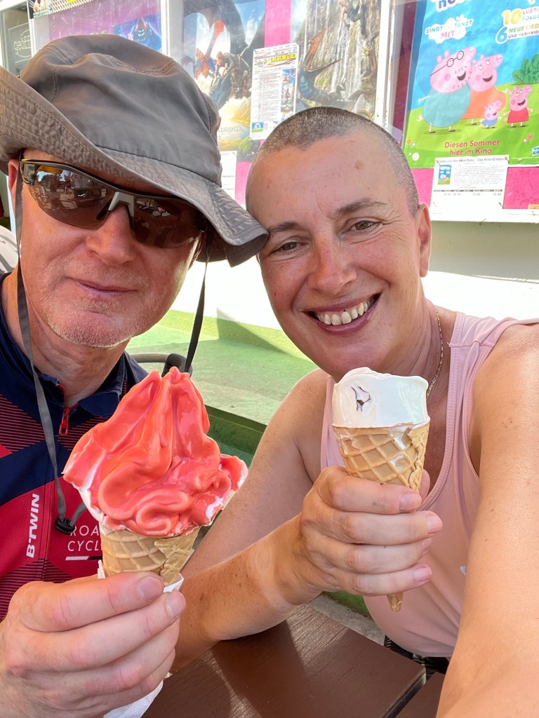 À 15h30, on s’offre une glace après 58 km à Prerow, histoire de reprendre des forces avant les 20 derniers kilomètres !