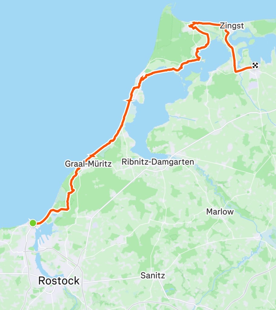 Aujourd’hui, c’est notre dernière longue étape, environ 80km à nouveau (moins le pont !). Il faut bien admettre que la fin approche, en même temps que Rostock !