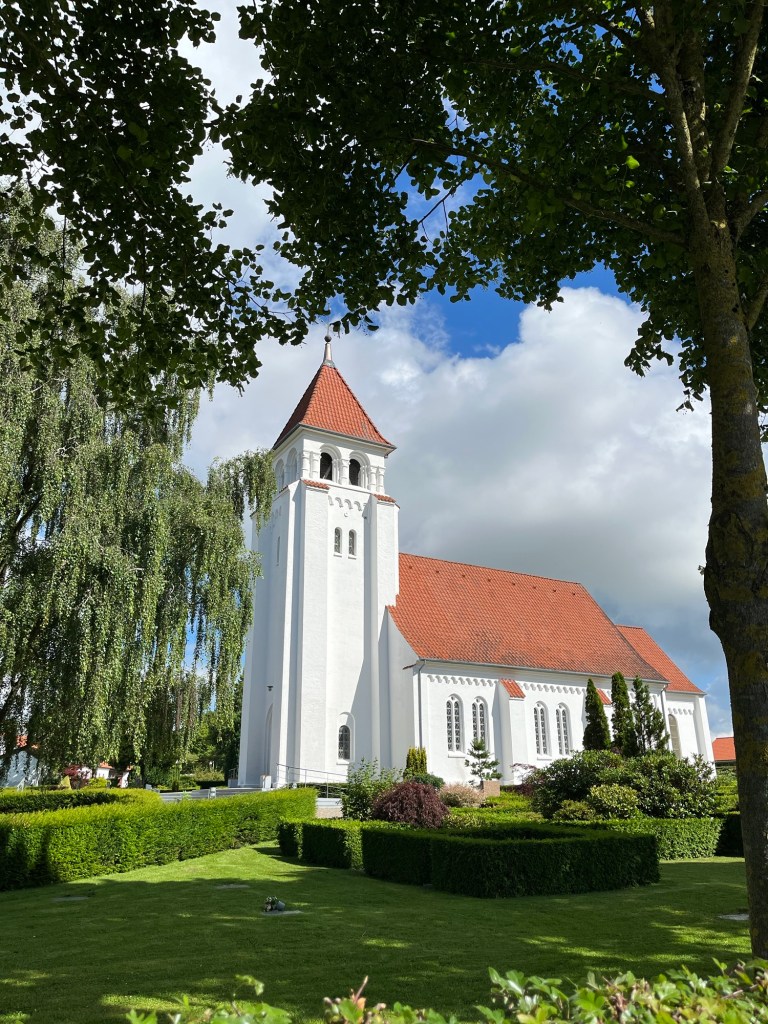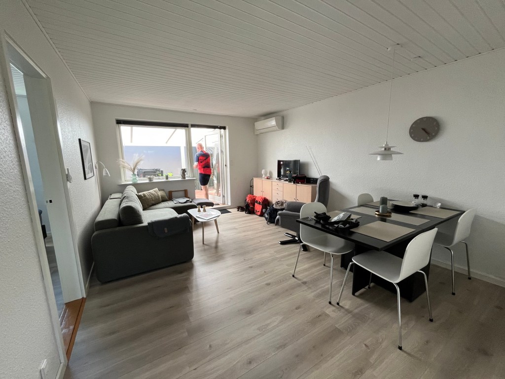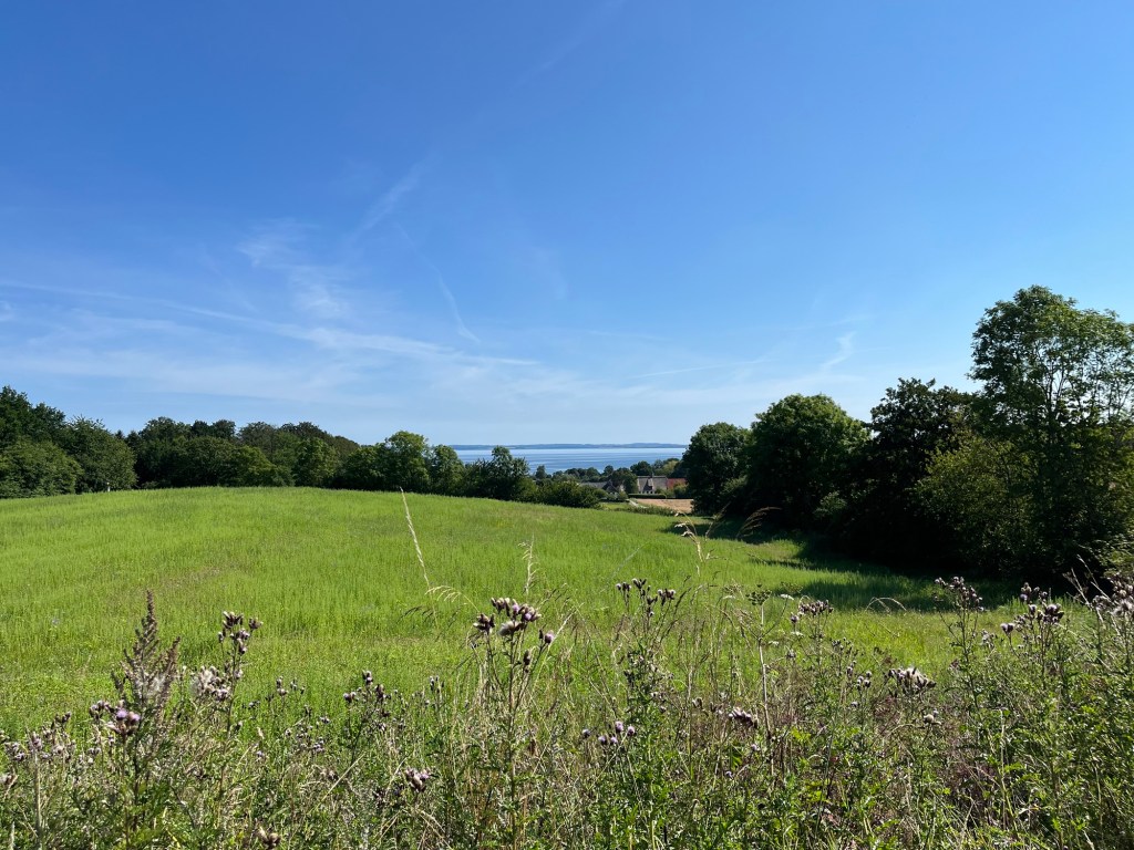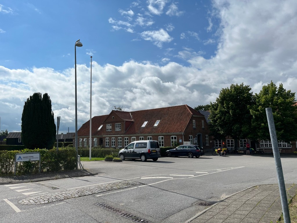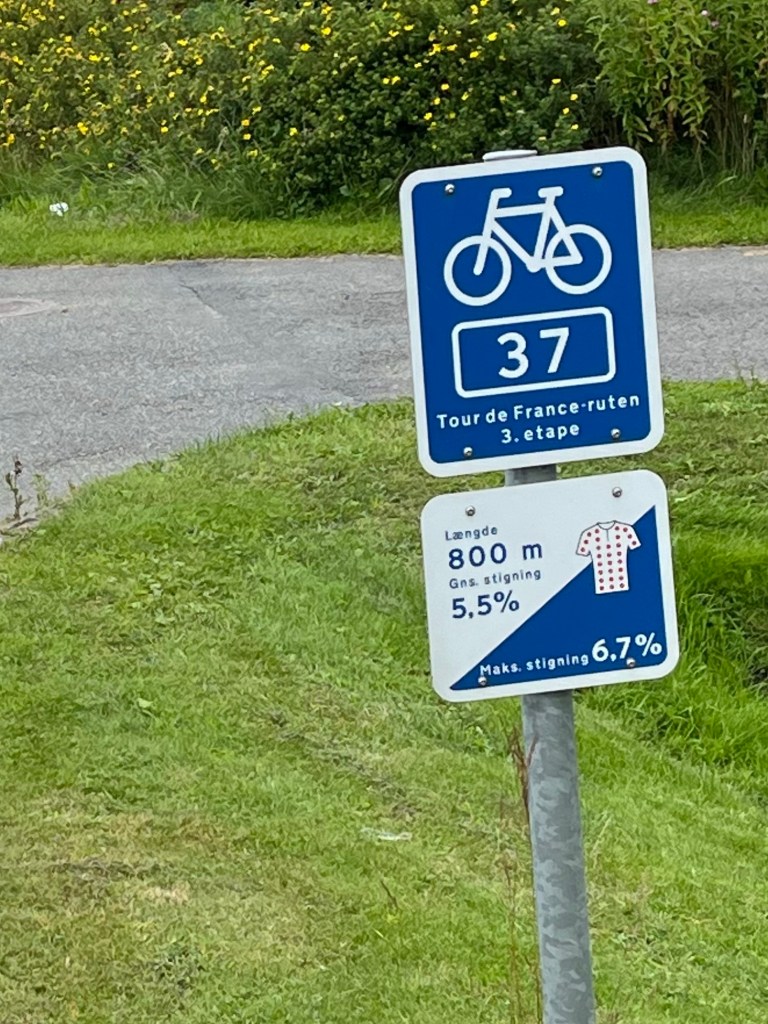 Ensuite on prend une magnifique « autoroute » cycliste, qui longe une réserve naturelle, puis une plage de sable blanc, sur près de dix kilomètres. On a le vent dans le dos, et on avance donc à vive allure, avec un paysage magnifique, tant sur notre gauche (la plage et la mer) que sur notre droite : une forêt de sapins, et dedans des maisons dont on n’aperçoit que le petit toit pointu.