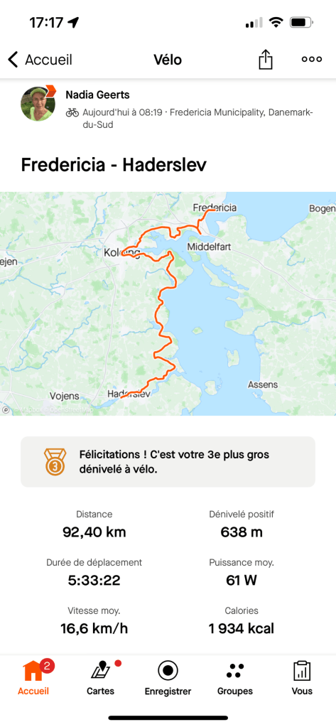 On se met en route à 8h20, les premiers kilomètres vent de face, et puis de dos, dès qu’on quitte le fjord.