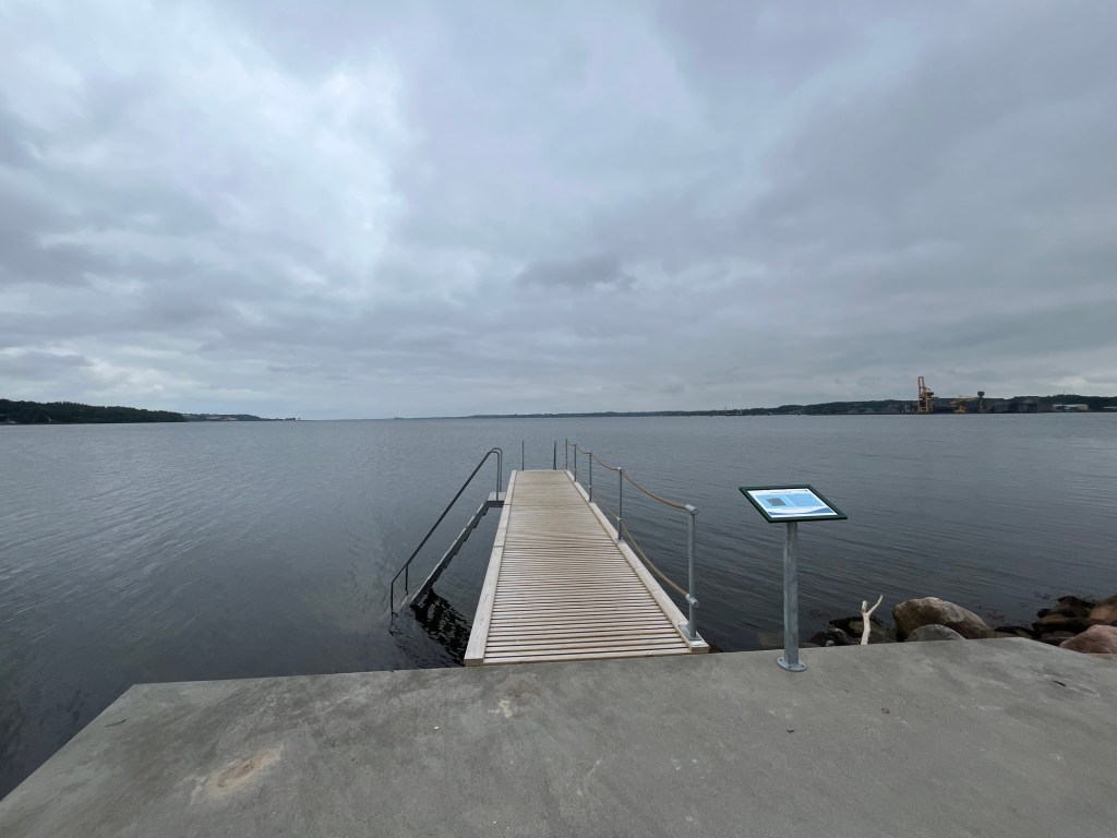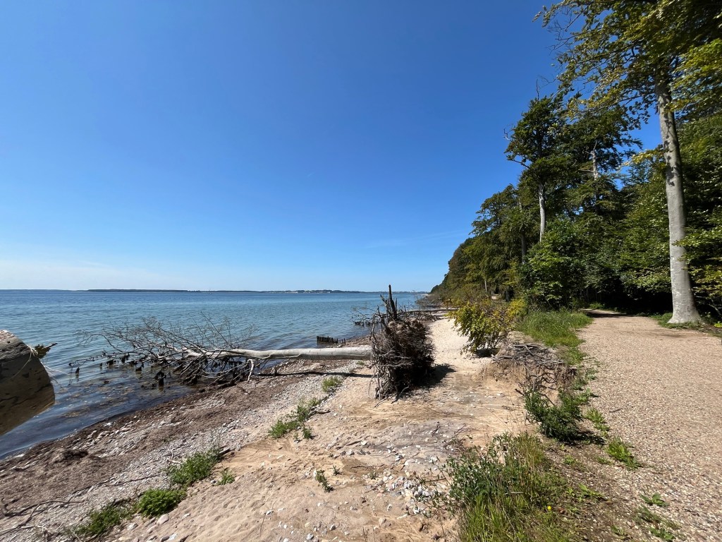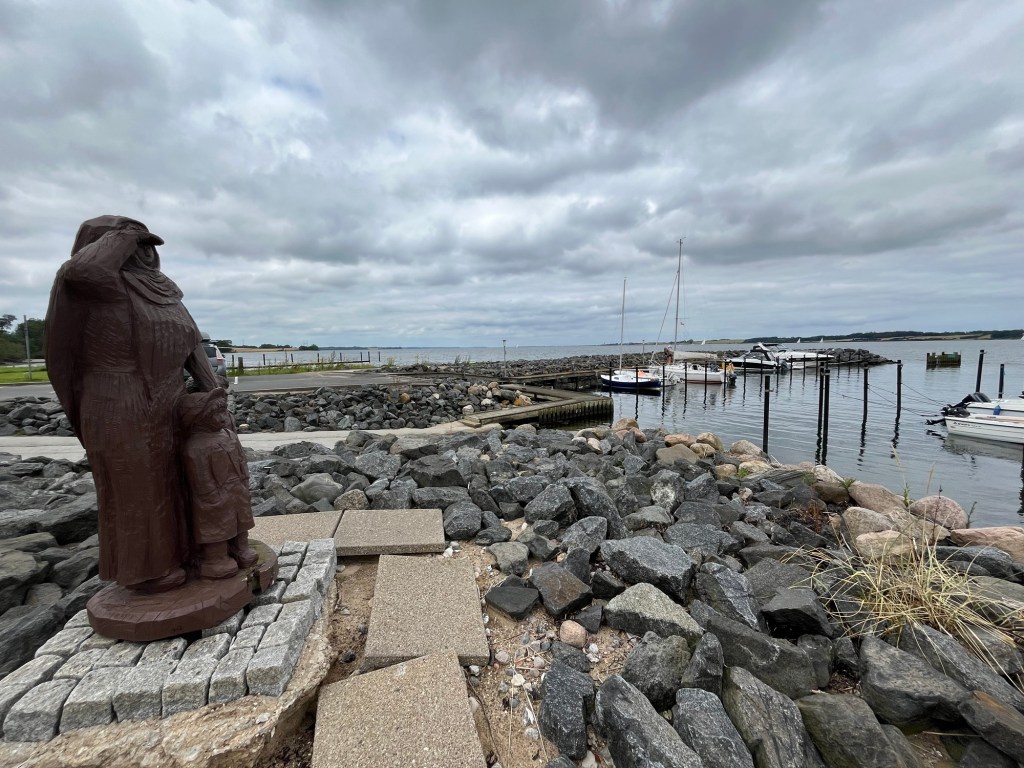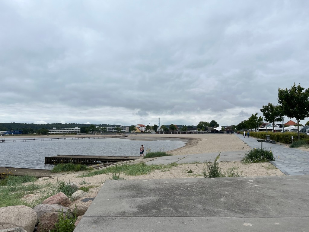 Après 13 km, à 9h10, on est à Kitzeberg, d’où on aperçoit notre hôtel. Puis on traverse des passages dans la forêt, on longe des petites plages désertes et on voit même une toute petite sirène !