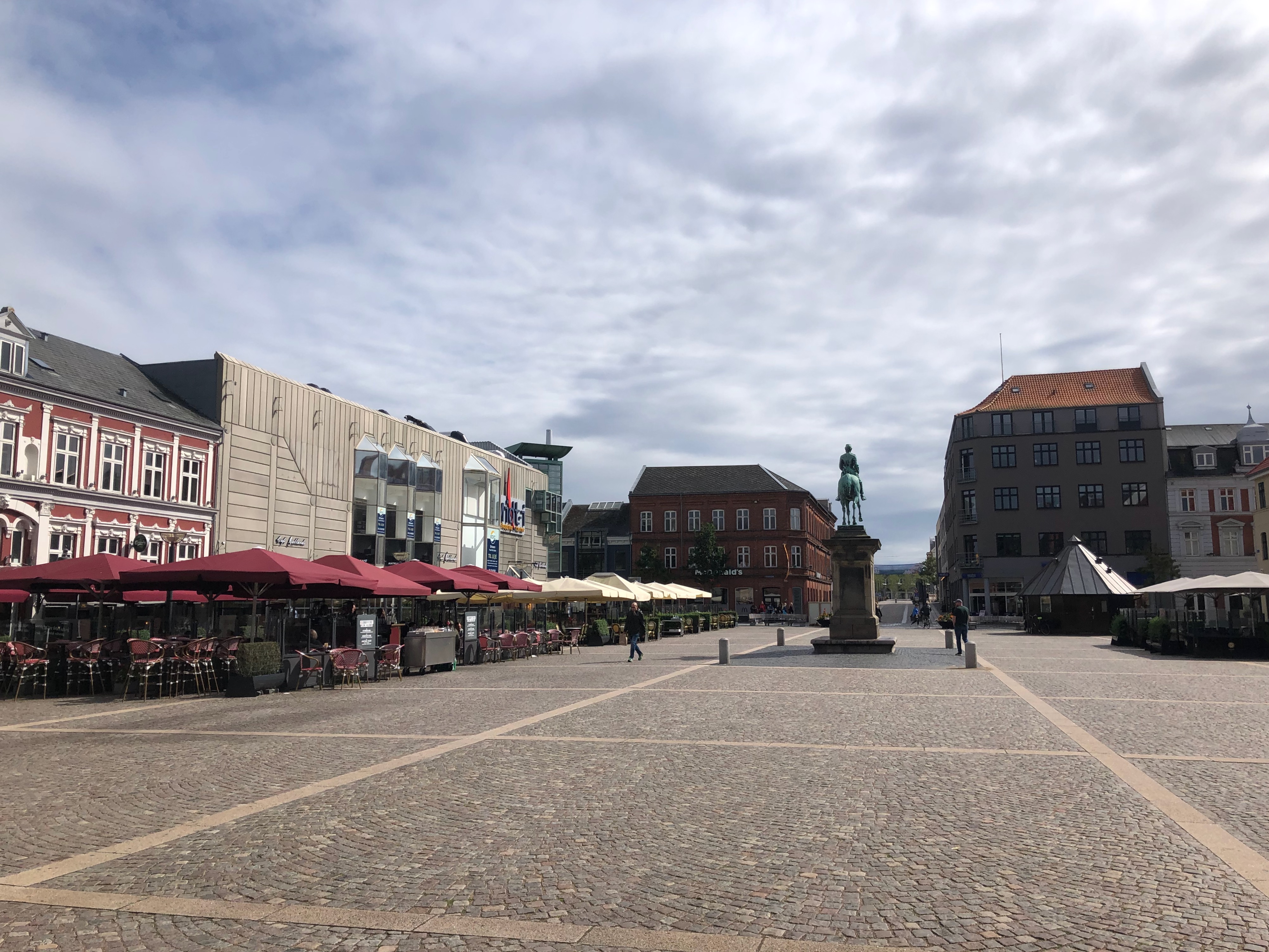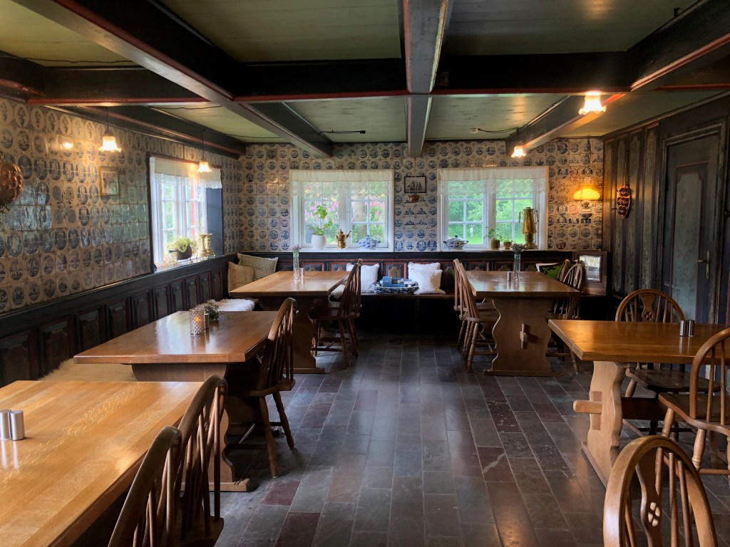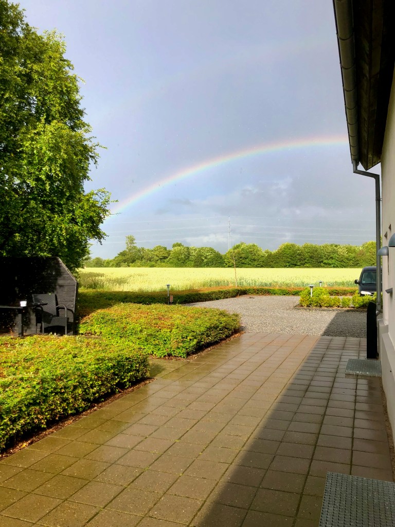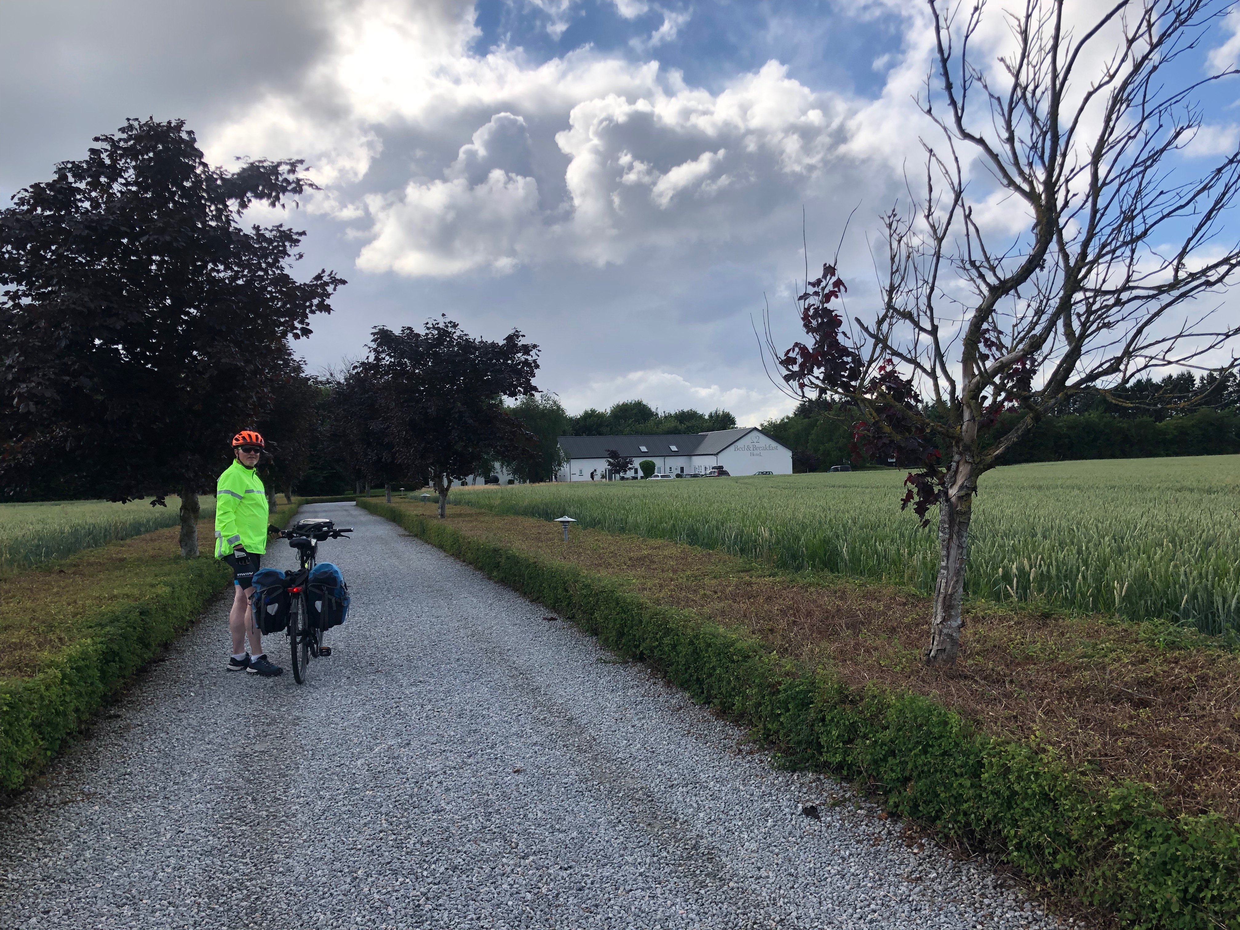 Pendant notre petit-déjeuner, il se met soudain à pleuvoir des cordes. On s’en fiche, on pare au plus prisé : manger, ce qu’on fait assis dans une très jolie salle qui date du 17è siècle, et où la reine en personne s’est attablée avant nous, comme en témoigne une photo accrochée au mur. Ce premier petit-déjeuner danois est un peu différent de l’allemand, plus de fruits, de légumes, etc. et moins de charcuteries. Tout ça reste quand même fort éloigné de mes habitudes, mais je me débrouille.