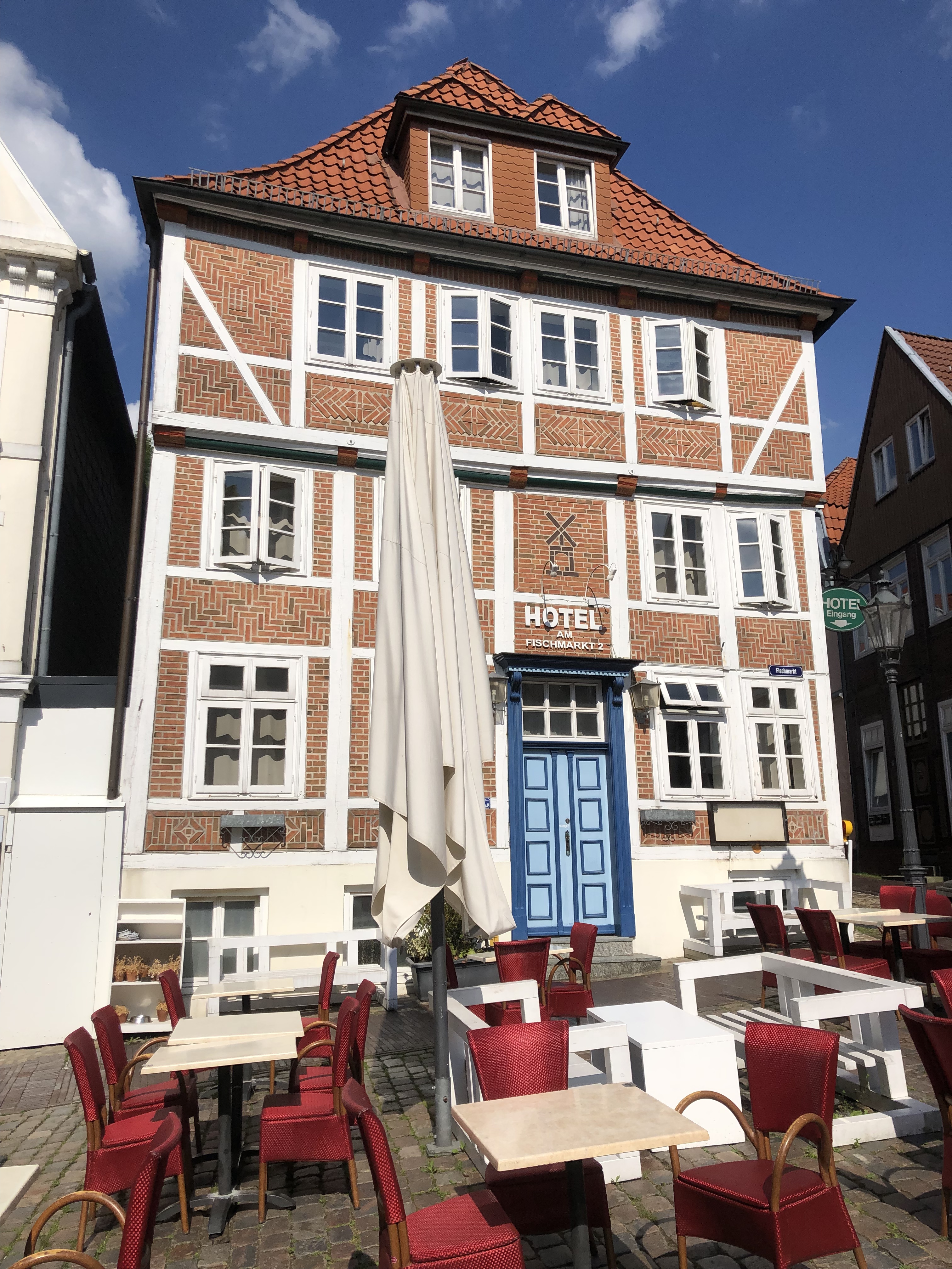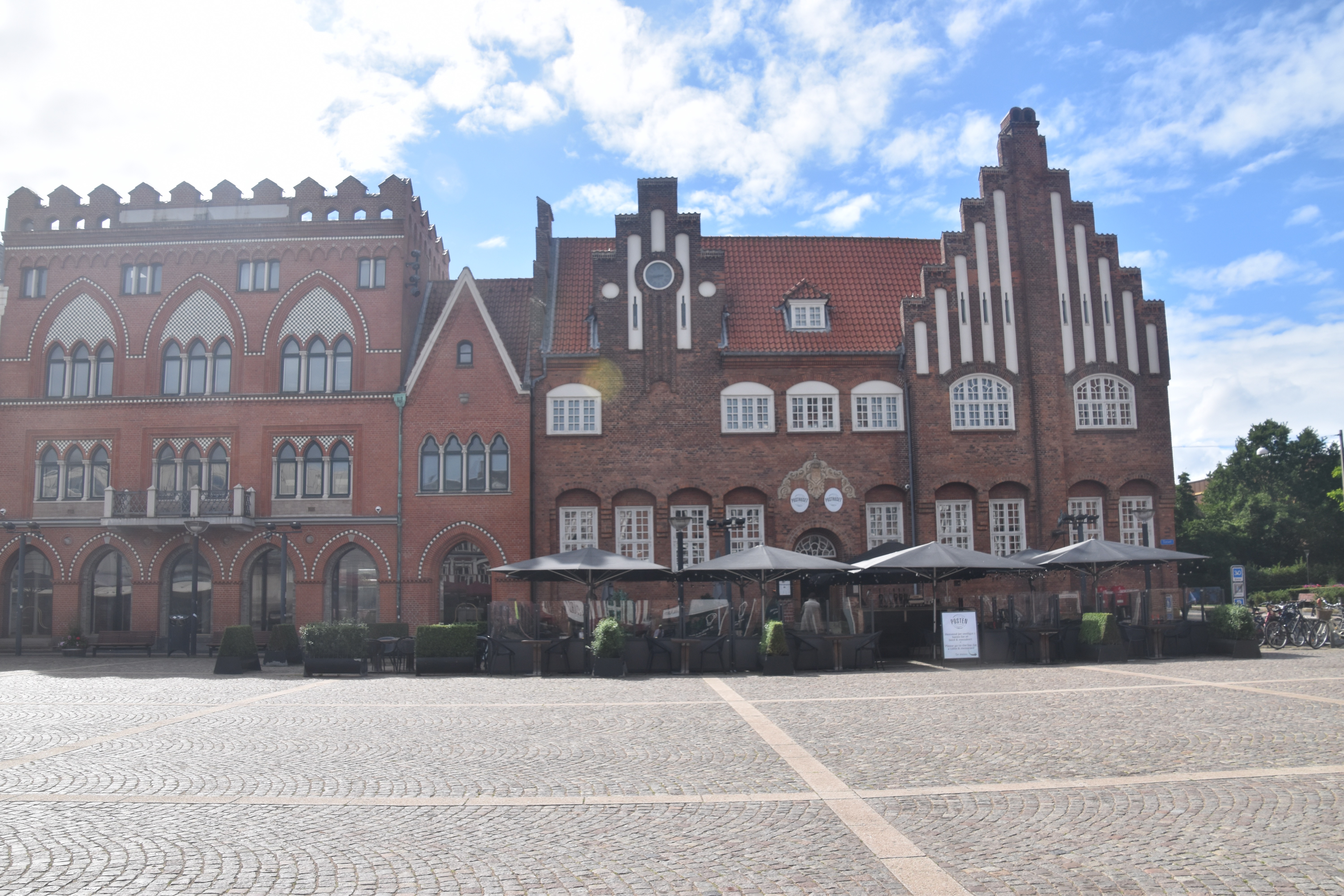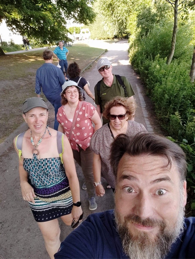 Pendant notre petit-déjeuner, il se met soudain à pleuvoir des cordes. On s’en fiche, on pare au plus prisé : manger, ce qu’on fait assis dans une très jolie salle qui date du 17è siècle, et où la reine en personne s’est attablée avant nous, comme en témoigne une photo accrochée au mur. Ce premier petit-déjeuner danois est un peu différent de l’allemand, plus de fruits, de légumes, etc. et moins de charcuteries. Tout ça reste quand même fort éloigné de mes habitudes, mais je me débrouille.