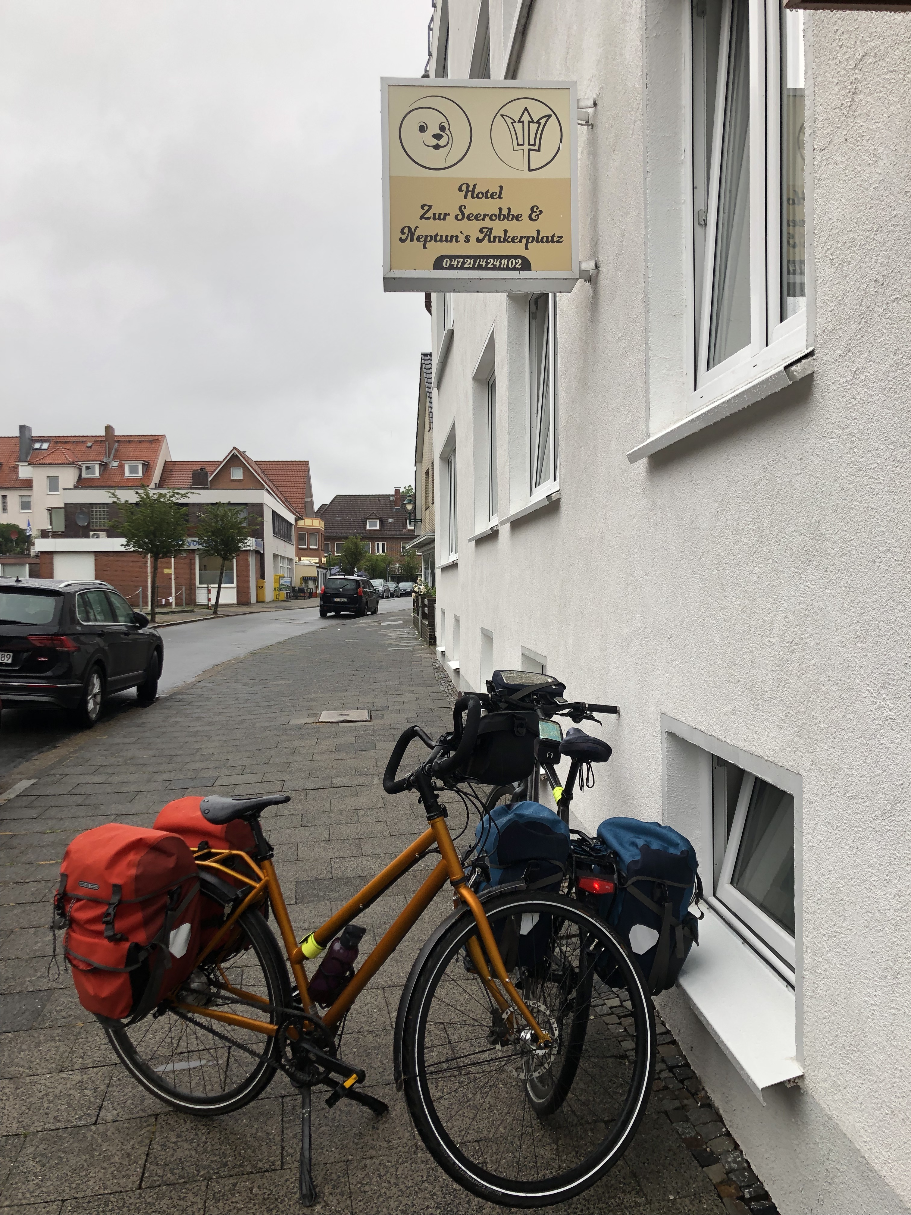 Comme j’ai une demi-heure à tuer avant le petit-déjeuner (qui est servi à partir de 7h30), j’en profite pour dire un truc que je pense souvent à écrire, et puis que j’oublie : je pense souvent à quelques personnes, au cours de ce voyage : à mes enfants évidemment (même aux deux dont je parie qu’ils ne lisent jamais ce blog – bisous à tous, je vous aime !), à un certain petit Raphaël qu’il me tarde de rencontrer, à ma maman qui aimait tant la Scandinavie (elle avait visité le Danemark et la Norvège), à ma filleule Coline, à mes amis Nath et Henry qui sont encore plus au Nord que nous, mais en voiture (et dont le blog « croise » souvent mes réflexions), et puis à quelques cyclistes :