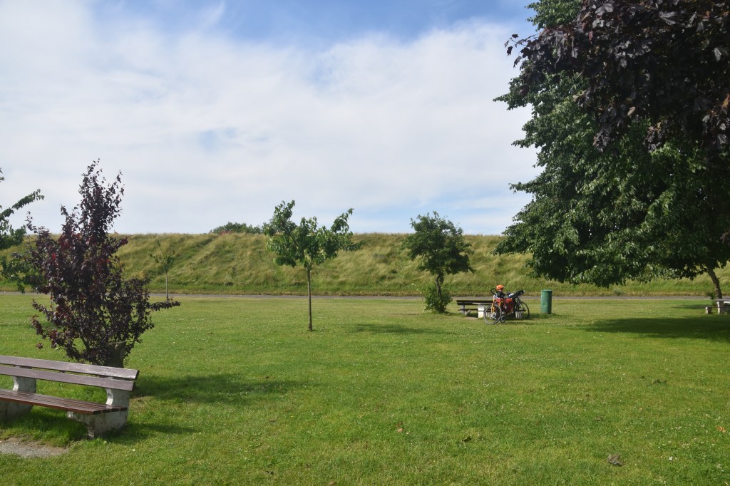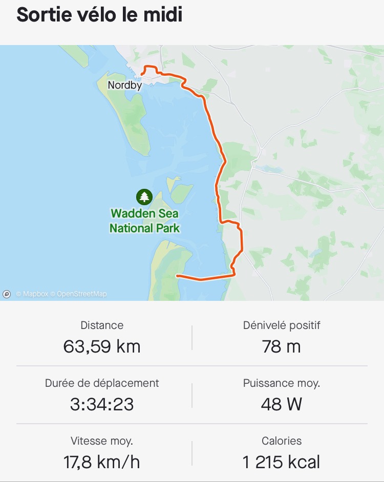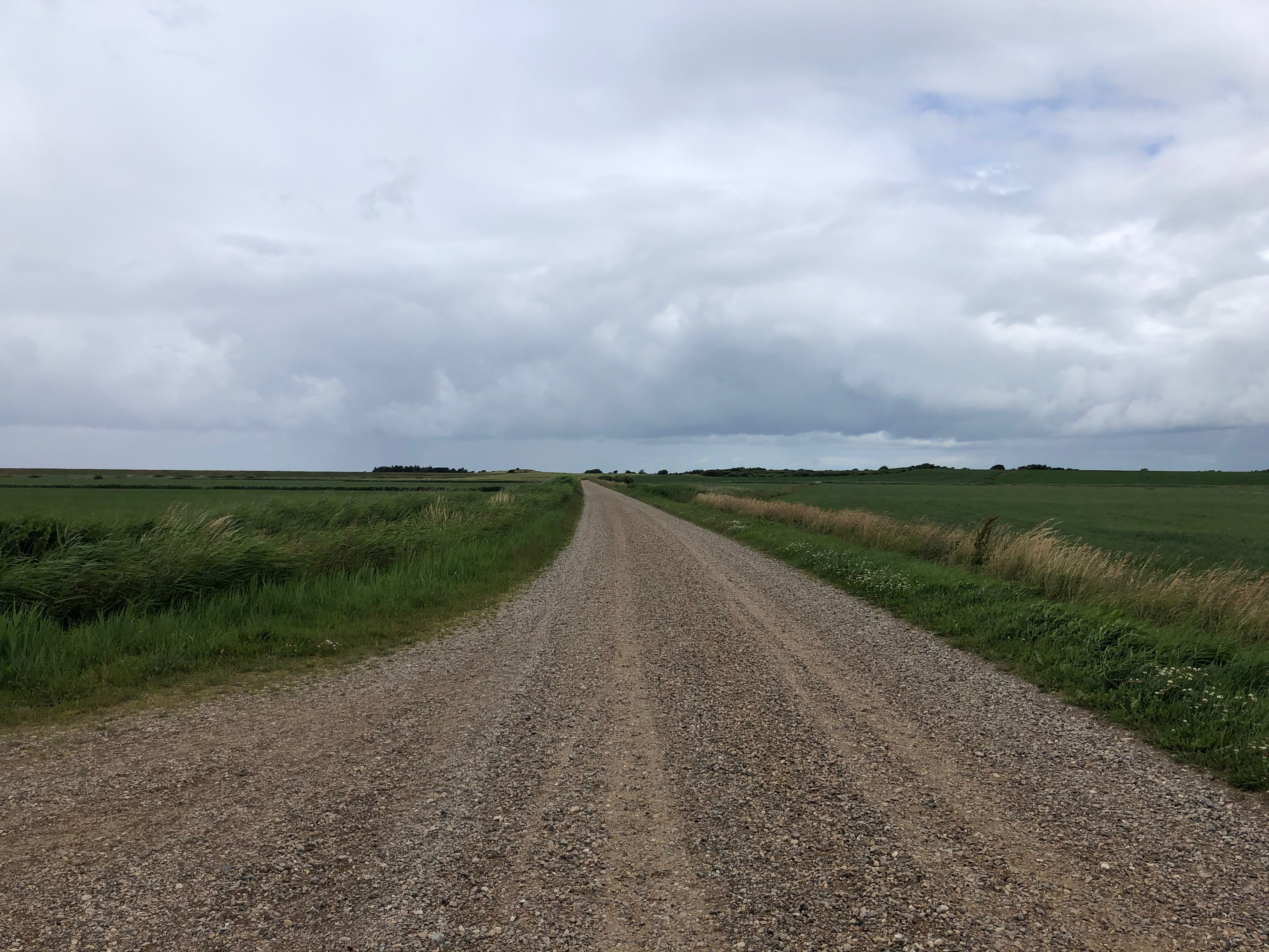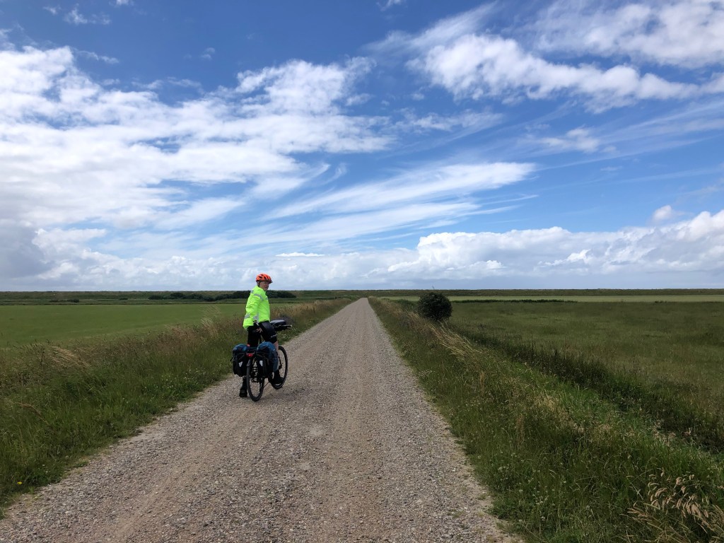 Le temps a évidemment passé, et il est 11h30 quand on est enfin prêts ! Rebelote sur la digue, qu’on avale à plus de 28km/h (aucun mérite, vent dans le dos), et cap vers le Nord le long de la Vestkystruten (ben quoi ? La Westkustroute, c’est pourtant clair !). Là, ça se gâte tout de suite un peu, car non seulement on n’a plus le vent dans le dos, mais en plus on se tape quelques kilomètres sur un sentier en gravier absolument abominable, dont le seul mérite est de nous confirmer que la réparation du pneu de Philipp tient !